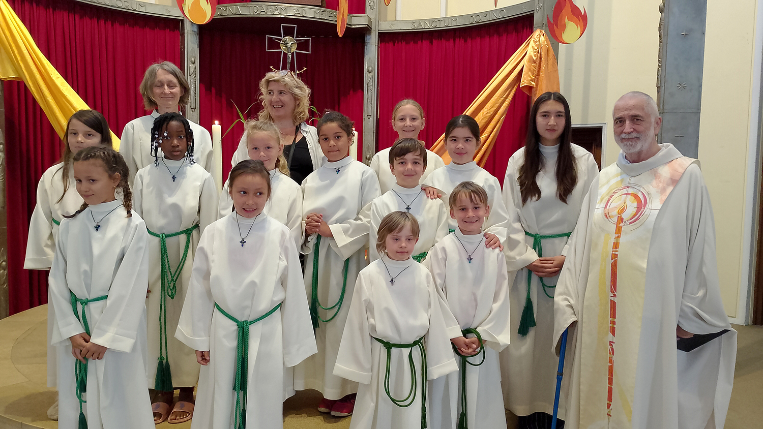 Am nächsten Morgen besuchten wir alle zusammen (immer noch müde) den Gottesdienst. In der Messfeier durften die Kinder des Bibelwochenendes nicht nur die Fürbitten lesen, es wurden auch 10 neue Mitglieder in den Ministrant:innendienst aufgenommen.